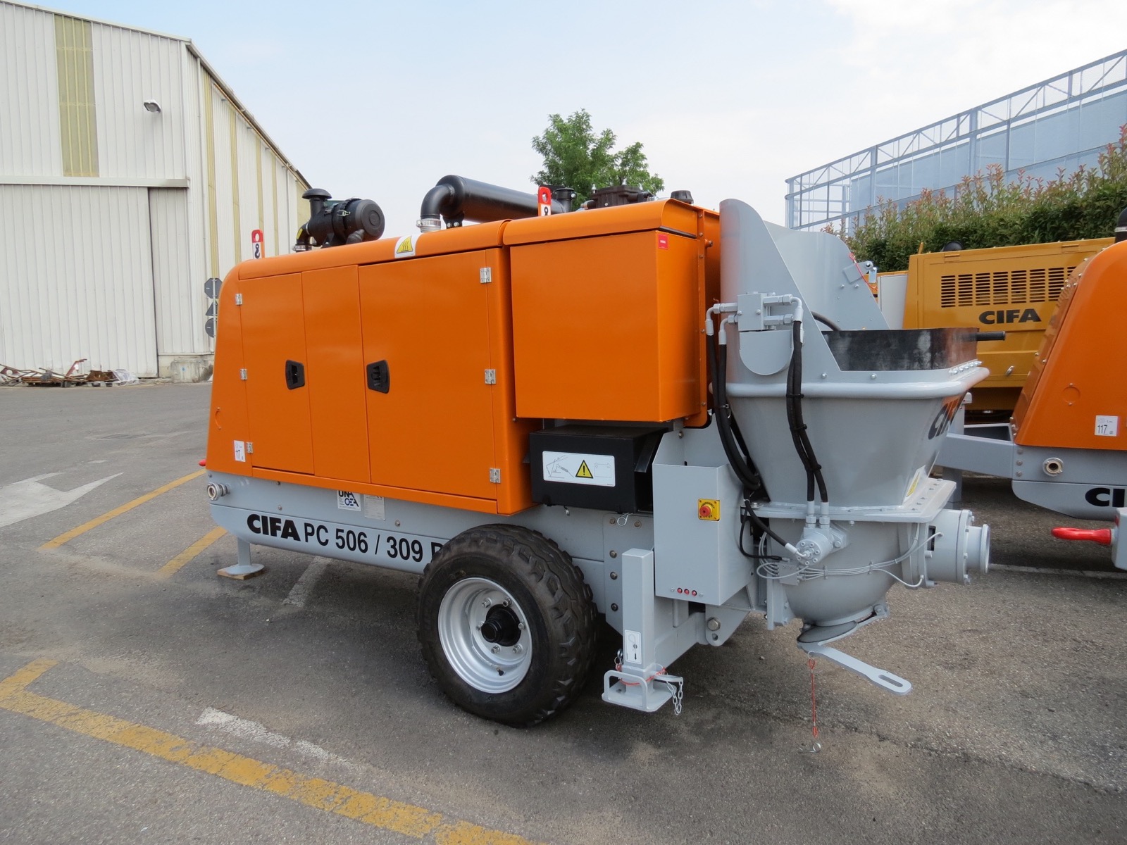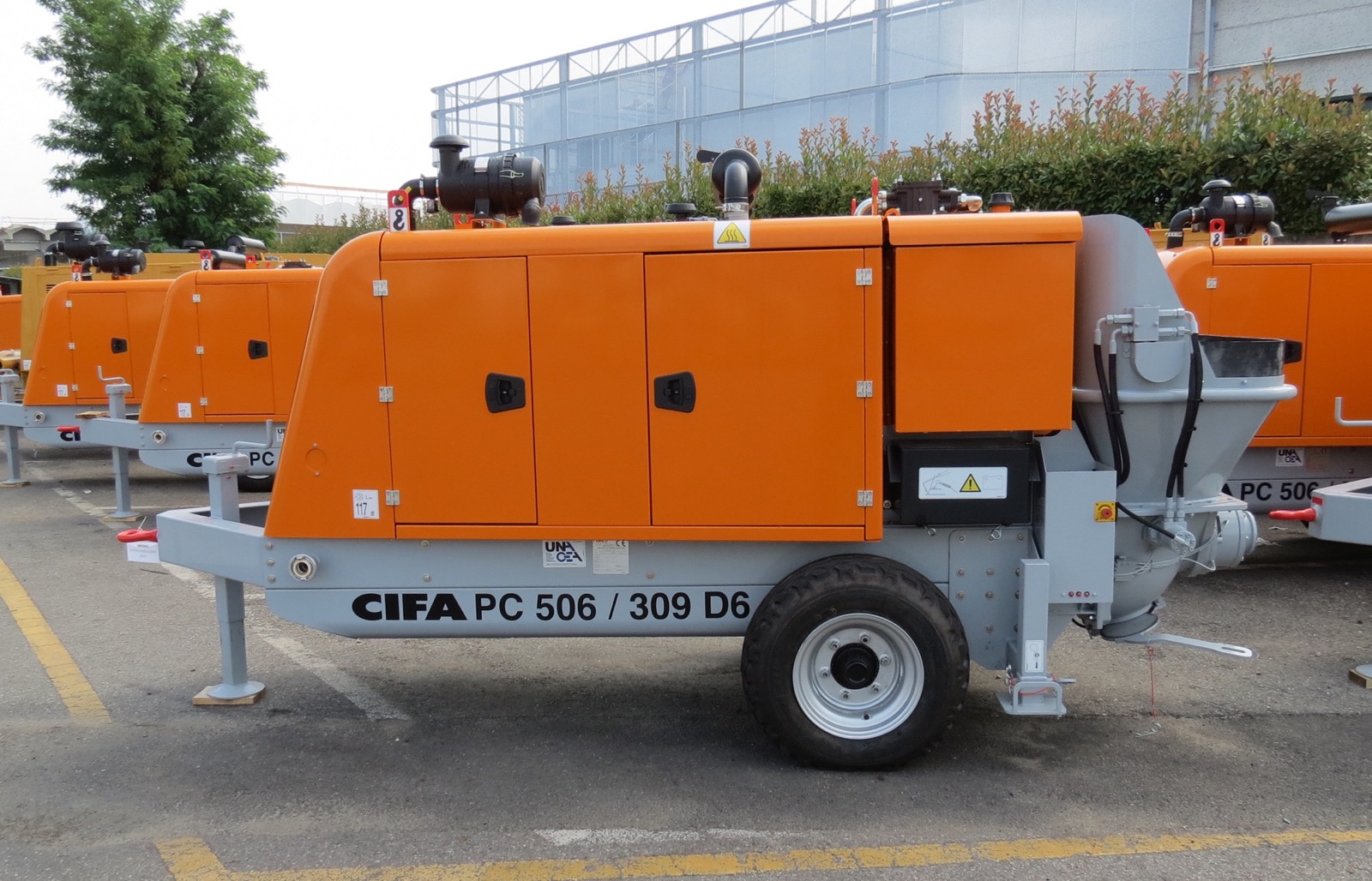 Pompa stationara CIFA PC – serie 6, cu motor Diesel, fabricata de CIFA SpA – Italia, este un utilaj de capacitate mica, destinat transportarii betonului pompabil cu agregat.